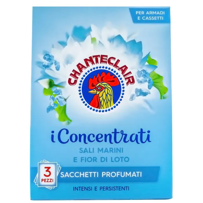 Săculeții parfumați ChanteClair au note de săruri marine și flori de lotus. Oferă hainelor tale un parfum intens și persistent. Fiecare cutie conține 3 pliculețe parfumate.