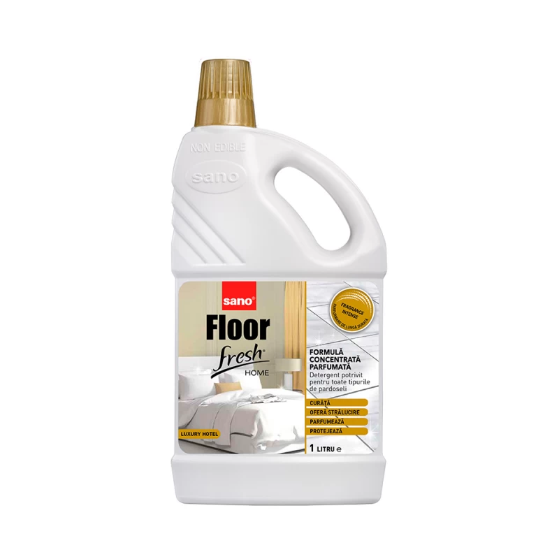 Detergent potrivit pentru toate tipurile de pardoseli: ceramice, granit, portelan, marmura, etc.Imbogatit cu parfumuri deosebite, cu efect indelungat de improspatare a aerului.4 in 1: curata, lustruieste, protejeaza toate tipurile de pardoseli si lasa incaperea intens parfumata.