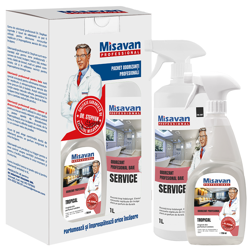 Dr Stephan Odorizant Service este un odorizant profesional recomandat pentru eliminarea mirosurilor neplacute din baie.