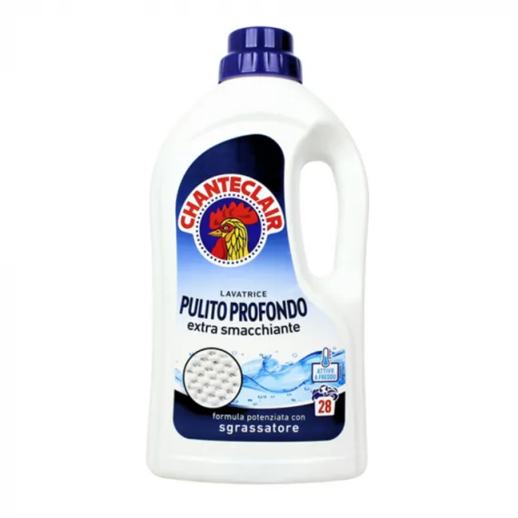 Noul detergent lichid de rufe Chanteclair Pulito Profondo pentru masina de spalat rufe , datorita formulei sale special concepute, extrem de concentrata si de eficienta imbogatita cu degresant Chanteclair indeparteaza chiar si cele mai incapatanate pete. Avand in componenta sa degresant asigura o curatare impecabila, rufe mult mai curate chiar si la temperaturi scazute.